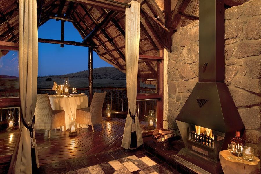 Its location high on the side of a hilltop offers some of the most stunning views of the game reserve and the custom-designed chalets come equipped with a romantic sunken bath, spacious bedroom, a private balcony overlooking the busy waterhole and a fireplace. Famous for its romantic ambiance, bushveld experience, and the unique home-cooked African-inspired dishes, the Tshukudu Bush Lodge makes for the ultimate romantic safari experience in the very heart of the Pilanesberg Game Reserve.